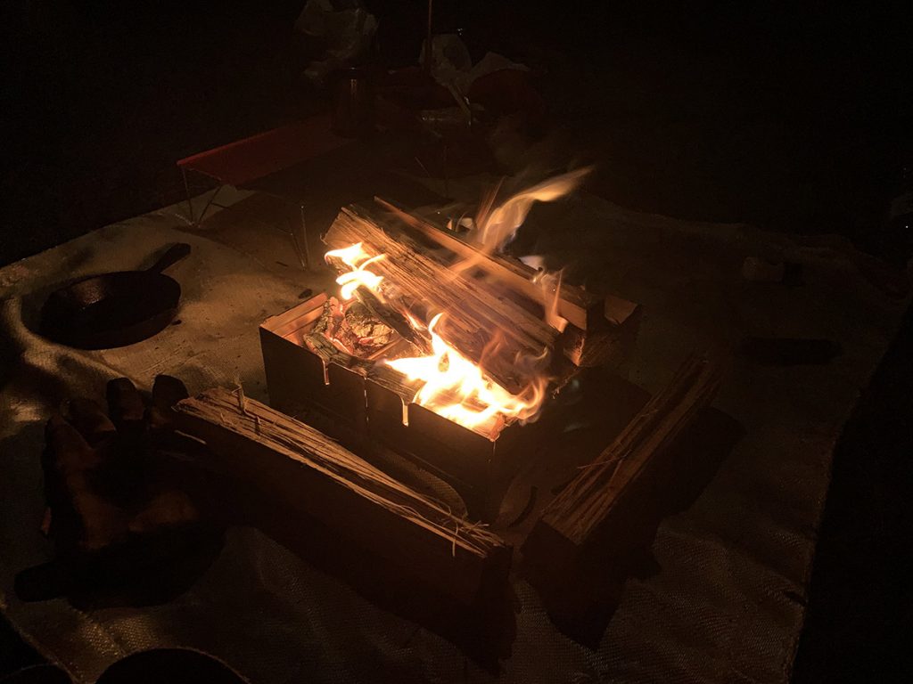 乾いた薪はよく燃え、Fire Safeはまさに直火に近いように感じる焚火台だ。
