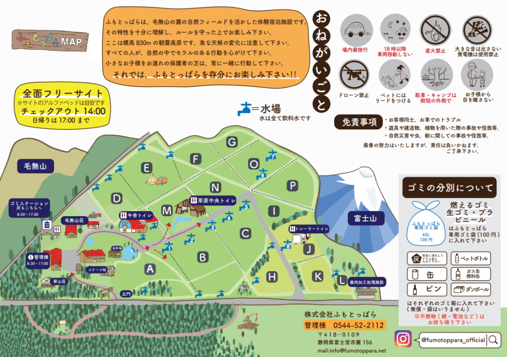 普段は北関東や千葉に出かけているから、こんな時くらい西側に行くのも悪くないと考え、山梨や長野県、伊豆半島でキャンプ地を探したところ、富士山近くで安いキャンプ場があり、しかもキャンセル料金が不要であったためひとまず予約しておこうと深く考えず2泊予約することにした。予約確認メールを読みながら検索したときに気づいたが「ゆるキャン△」でも登場した「ふもとっぱら」キャンプ場だった。