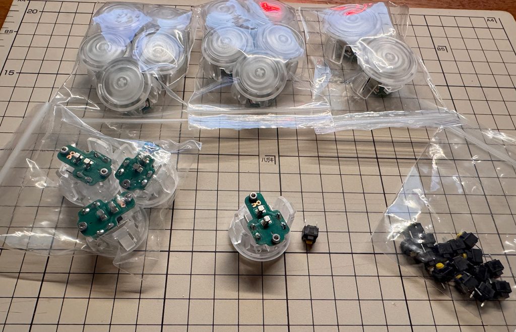 そんなやり取りから結局スイッチ単体ではなくボタンで購入することにした。(24mmを13個、30mmを1個)注文から都合6日で到着。価格は配送料込で$47。(約8,000円。ボタン単価は$2.5で390円ほど)