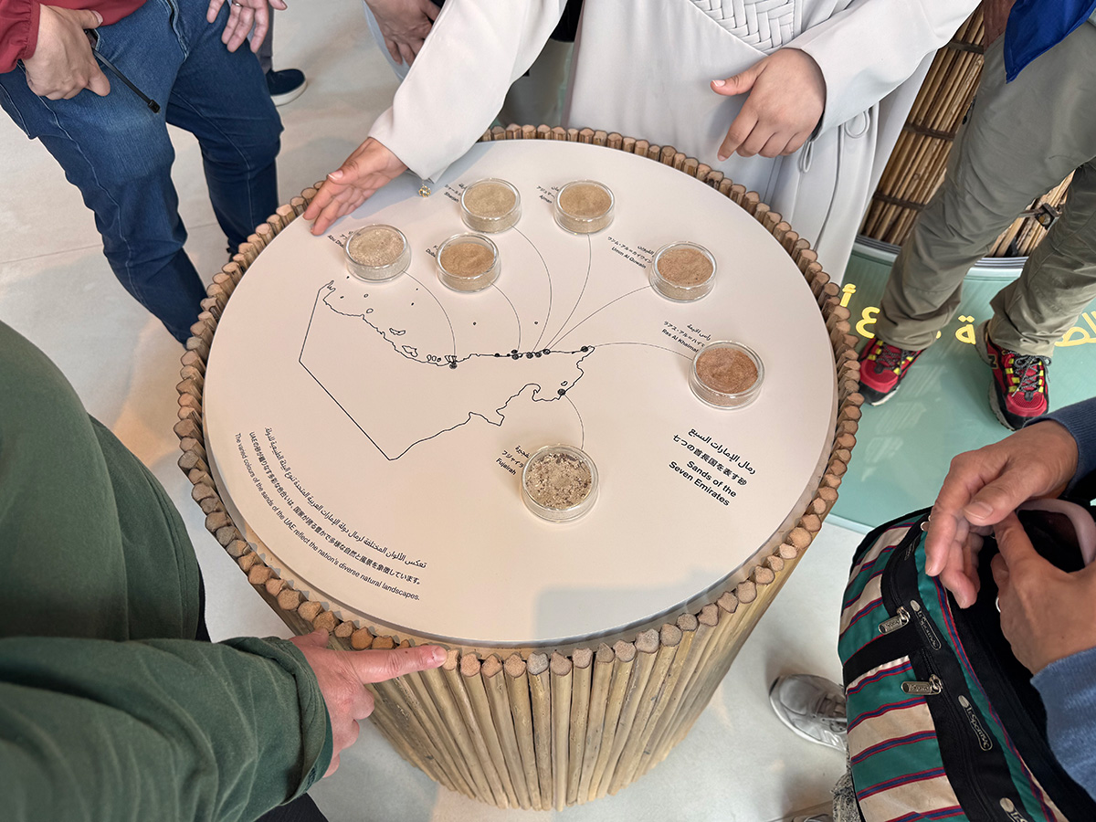 UAEで連想するのはドバイくらいで、なんとなく「すごいお金持ちの国」のイメージがあったけれど、パブリオン内は未来に対してUAE国内事業者が取り組んでいることの紹介、UAEの地域で砂が違うため文化が違うといった説明を受けることができた。