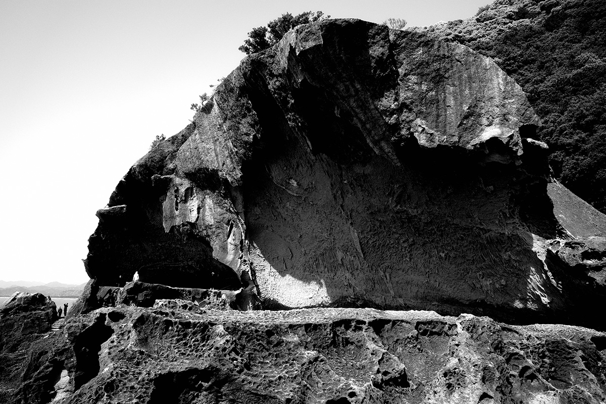 新宮に出たあとは、海沿いの国道42号線を北上する。ここは前に走ったことがあるけれど、時間にも余裕があるので気になった場所があれば寄り道しようと思っていた。すると七里御浜からトンネルを抜けたすぐ右手に「鬼ヶ城」と看板が目に入る。「桃太郎の国から来たボクとしては見逃せない」と思い向かってみることにした。