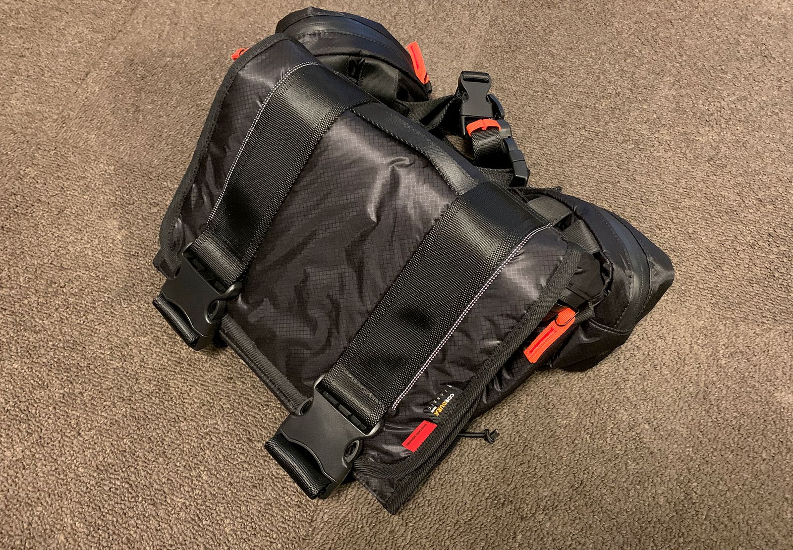 背中の快適さは当然のことながら、柔らかい素材が腰にフィットし、さらに荷物の重量がバイクに分散されるので快適だった。