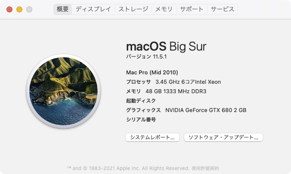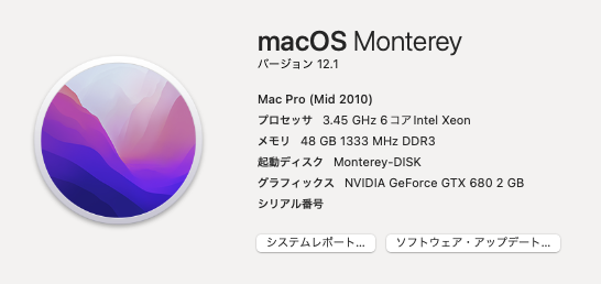 Mac Pro 2010にMacOS Monterey 12.1をインストールした