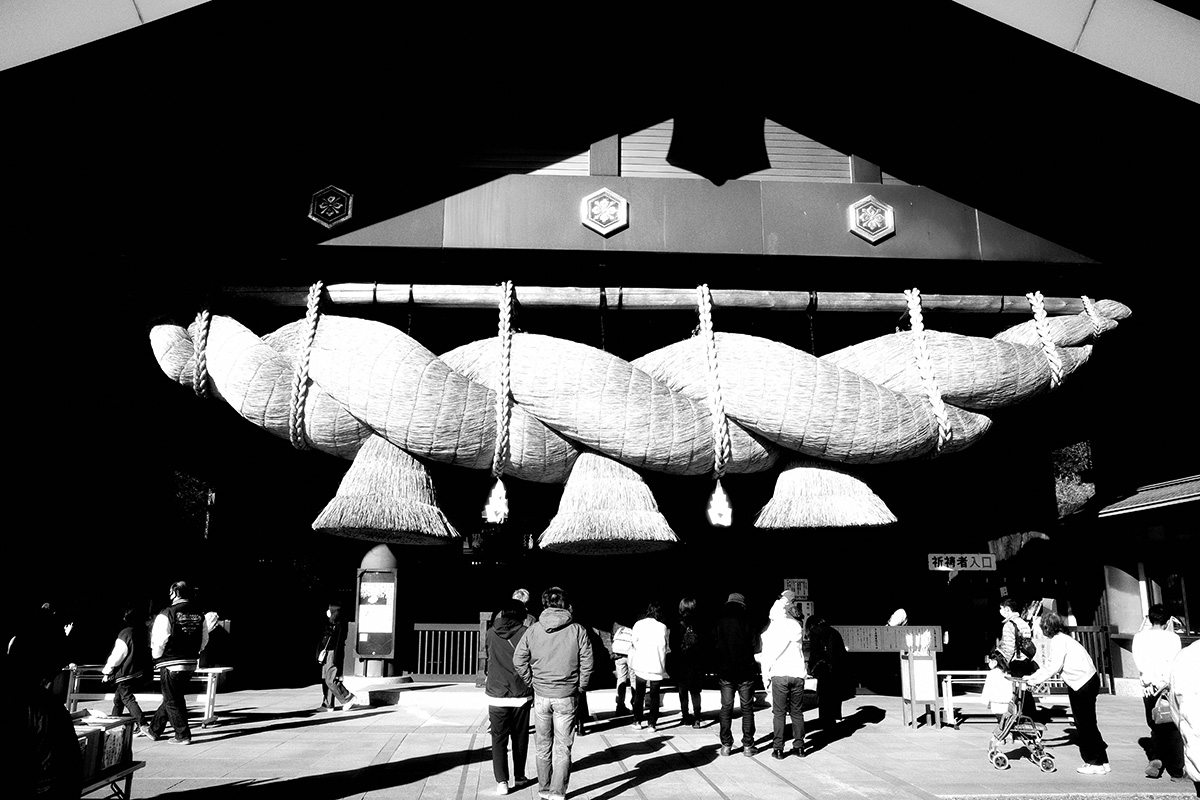 何度訪れても常陸出雲大社の巨大なしめ縄は印象的だ。