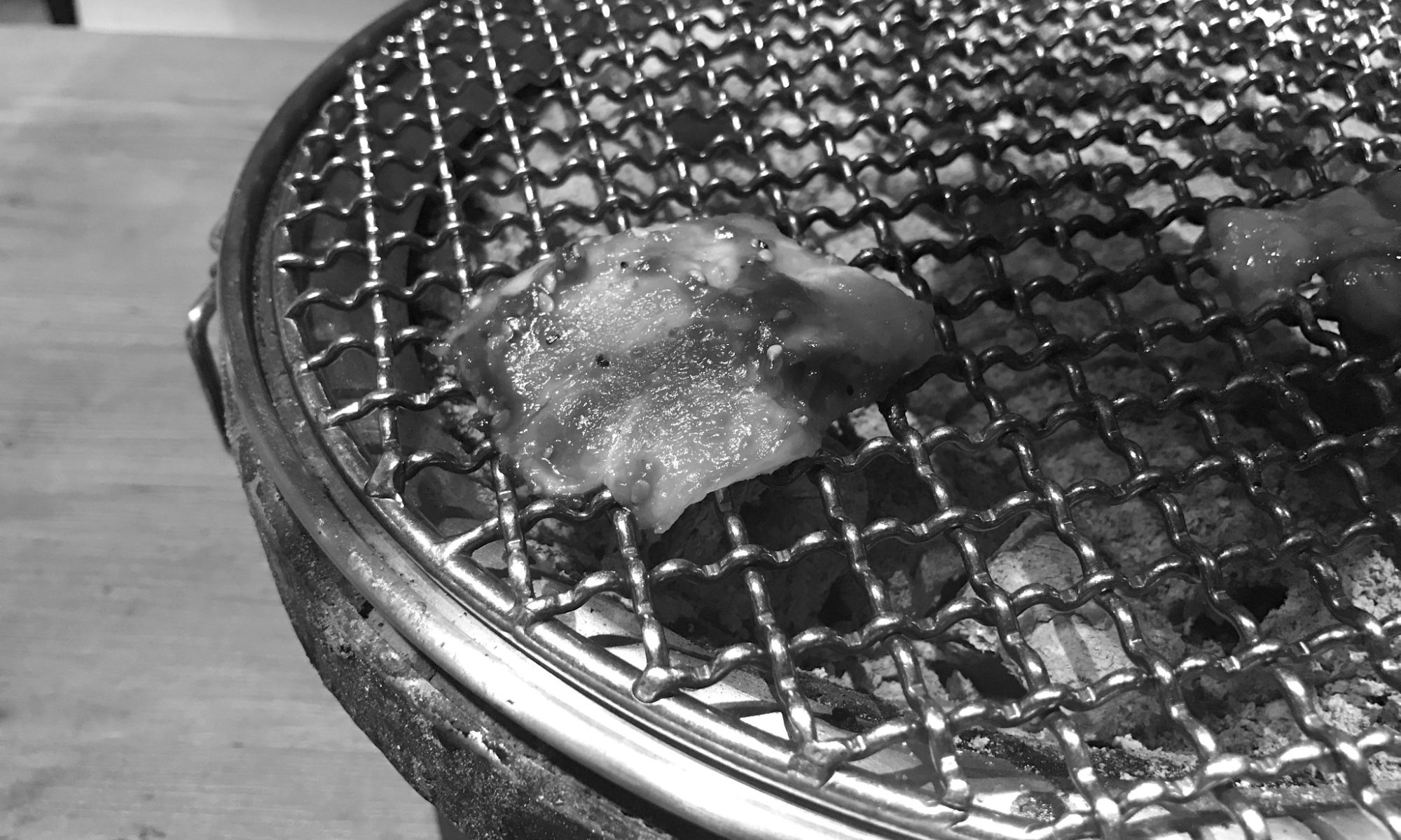 待つことしばし、出てきた肉はタレが良く染み込んだというか、固形のタレが張り付いた肉だった。価格のわりにボリュームが多く、七輪をいっぱいにするほどの肉を焼くことができたのは嬉しい誤算だった。(会社の近くは5切れ程度で1400円だった)